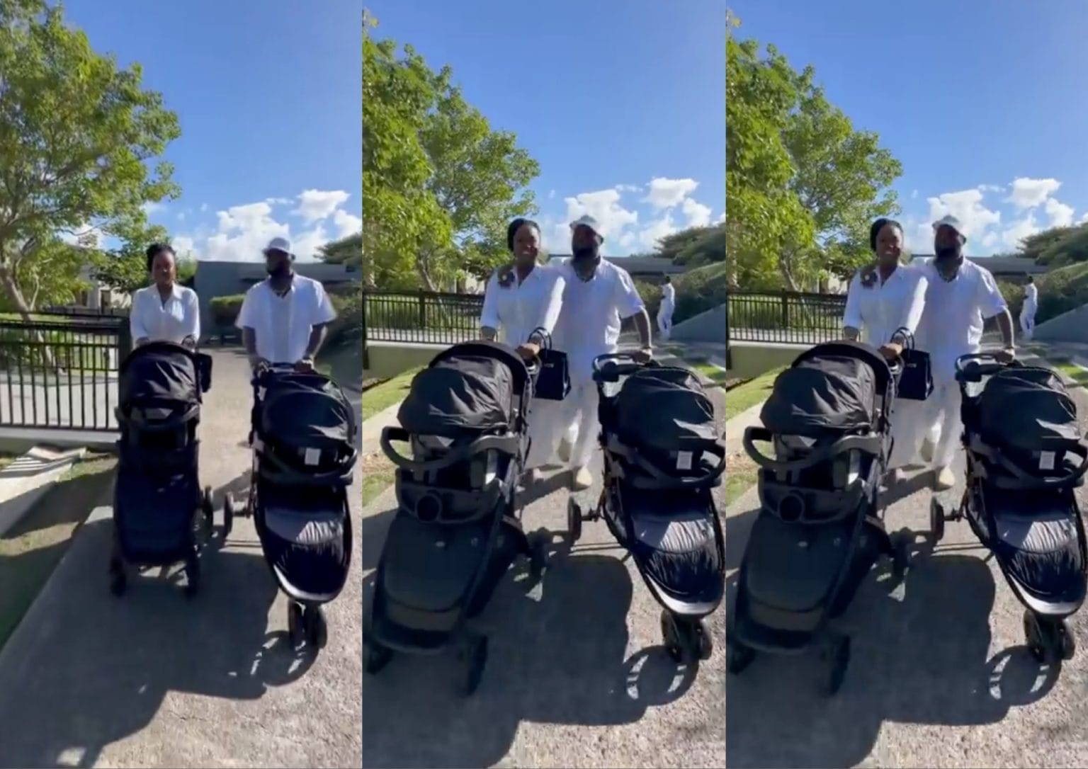 In the video, the couple who lost their son, Ifeanyi, in October 2022 and recently welcomed twins could be seen together in public taking a walk with their babies.