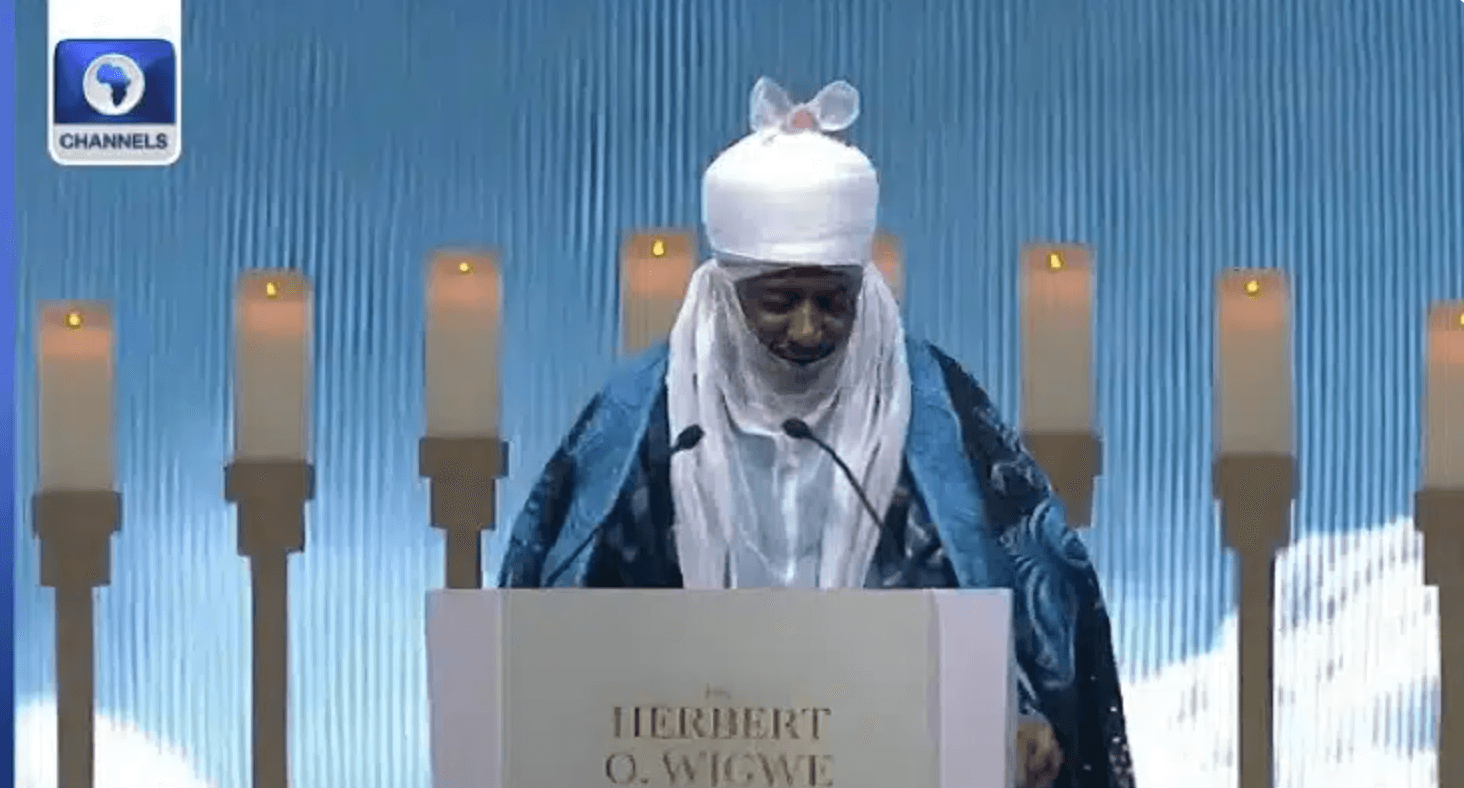 A video showing the moment the former Emir of Kano, Muhammadu Sanusi II, broke down in tears while paying tribute to the former Group Chief Executive Officer of Access Holdings Plc, Herbert Wigwe has surfaced on social media.
